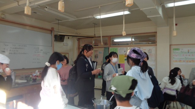 6年生総合的な学習の時間「うどんづくり」。こんぶだし、かつおだし、煮干しだし。どれがおいしいか?参観に来た先生方に味見をしていただき、アンケ―トをとりました。一番人気は、3つの合わせ出しでした。