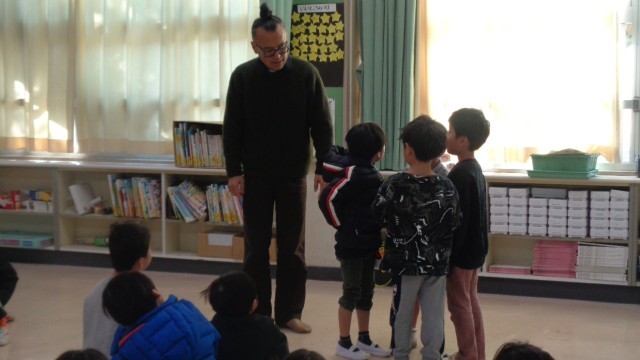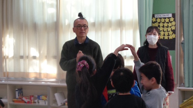 世田谷パブリックシアターの方が来てくださり、日本語の「体を使っていろいろなものを表現しましょう」の学習をしました。1人で石やへび、わにに変身したり、友達と協力しながら冷蔵庫や自転車を表現したりしました。思うままに色々なものになりきって、楽しく学ぶことができました。