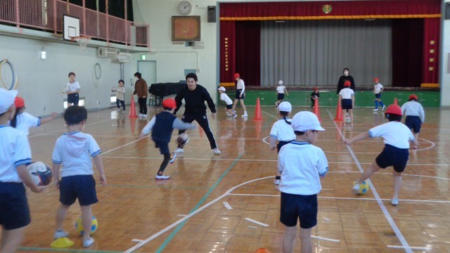 1年生と仲よしの子どもたちはコーチの話をよく聞き、ちょこちょこドリブルやゲームに積極的に「チャレンジ」し、その楽しさを感じることができました。