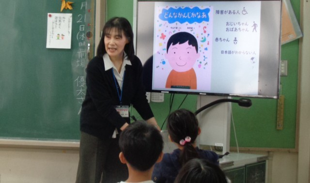 1月21日㈬、22日㈭、特別支援学校の滝澤雅代先生をお招きし、授業を行いました。特別支援学校の紹介や障害の種類について教えていただき、児童は理解を深めることができました。特に、わかりやすくコミュニケーションをするための身振り手振りなどの「サイン」に関心をもち、誰にとっても便利で大切なものだと感じていました。