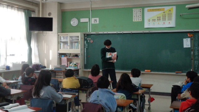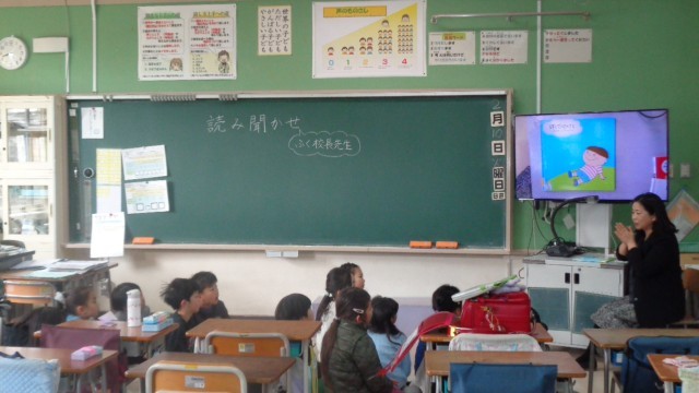 読み聞かせが始まると、どの学級でも本の世界に引き込まれ、真剣な表情で耳を傾けたり、思わず笑顔になったりする姿が見られました。先生それぞれの語り方や本の選び方の違いもあり、子どもたちにとって新鮮で楽しい時間になったようです。今回のシャッフル読み聞かせを通して、本に親しむ気持ちだけでなく、学年や担任をこえて先生たちと関わるよい機会にもなりました。これからも、子どもたちが本と出会い、想像の世界を広げていけるような活動を大切にしていきます。
