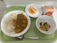 今日の給食は、ごはん、ししゃものフライ、野菜の梅おかかかけ、呉汁、ネーブルでした。今日の汁物「呉汁」は、大豆をすりつぶして使ったみそ汁です。豆にはいろいろな種類があり、形や使い方によって名前が変わります。