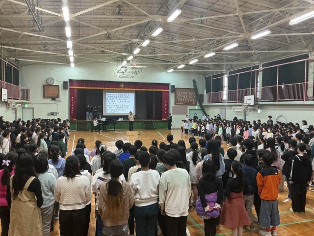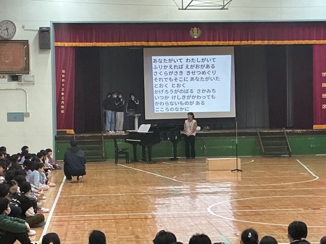 今日の音楽集会では「変わらないもの」を全校で合唱をしました。今のクラスで過ごす時間も残りわずかです。お世話になった人や友達に対して思いを込めて歌うことができました。