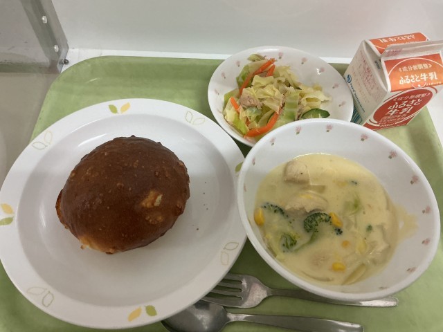 今日の給食は、ビスキュイパン・冬野菜のコーンシチュー・キャベツとツナのサラダでした。キャベツの旬はとても長く、季節によって味わいが変わる野菜です。ビタミンCが多く含まれており、かぜ予防に役立ちます。