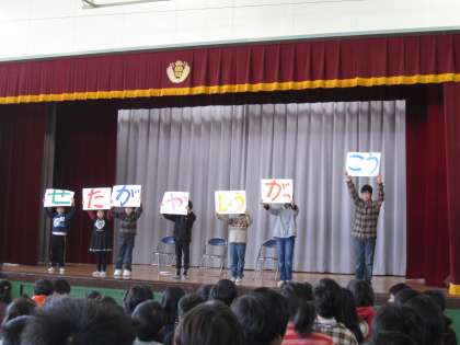 3校時、代表委員会主催で「80周年記念児童集会」が行われました。