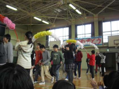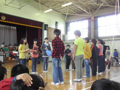 7日、6年生を送る会が体育館で行われました。お世話になった6年生に各学年から感謝の言葉と合奏や歌、クイズなどの出し物のプレゼントがありました。6年生からは、お礼の言葉と合奏が披露されたあと卒業記念品の贈呈がありました。