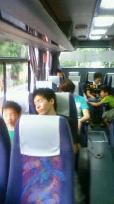 無事雨に降られることなく出発。バスの中で落ち着きました。世田谷小とはしばらくお別れです。