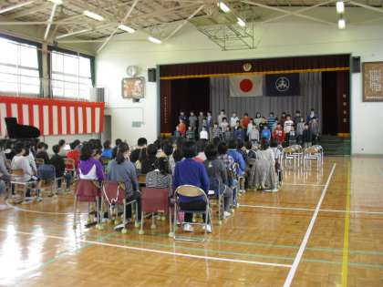 卒業式まで、あと1週間となりました。4・5・6年生合同練習が、今日初めてありました。入場から退場まで一通り、通した練習をしました。残されたわずかな練習日程となりましたが、みんなで頑張っていきます。