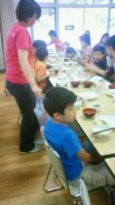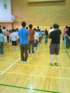 第二日朝会です。あれ!と思ったら雨が降りだして体育館で朝会。みんな元気に体操をしました。次は朝食、そして、ハイキングの代わりに富士サファリパークに行く準備をします。
