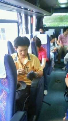 雨が降っていますが、ハイキングの代わりに富士サファリパークに行きます。バスに乗って出発です。