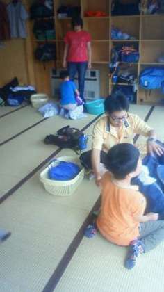 宿舎にもどって今度お風呂です。荷物を片付け、準備をします。雨があがって今日も雨具を出すことなく過ごせました。