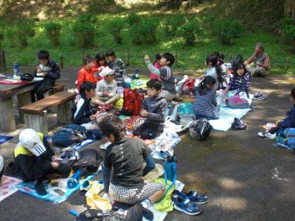動物たちの気持ちよさそうに歩く動きに、蝶の華麗に舞う姿に、歓声がわきあがっていました。お弁当も、みんなでシートを敷き、おいしく食べました。
