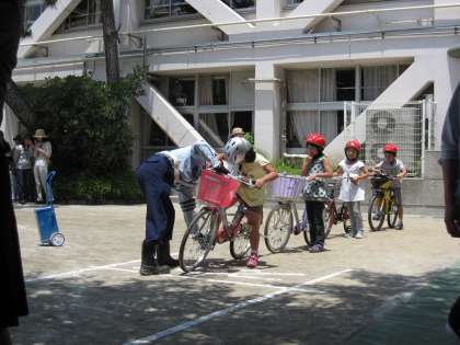 校庭で、交通安全教室が行われました。