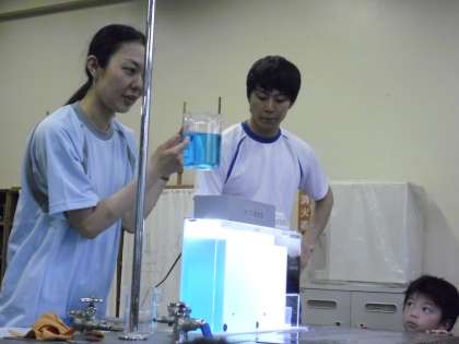 11日(火)5,6校時は、水道キャラバンの方たちに、東京のおいしい水ができるまでを教わりました。高度浄水処理の実験は、みんな目を輝かせて見ていました。