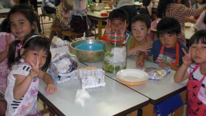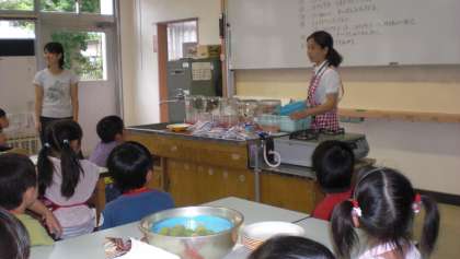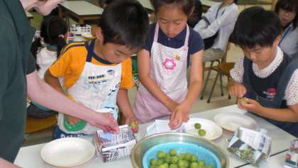 栄養士の先生のご指導のもと、かわいい1年生が一生懸命挑戦しました。できあがりまでに3週間位かかるとのこと。きっと甘くてほんの少し酸っぱい世田谷小特製梅ジュースができることと楽しみにしています。