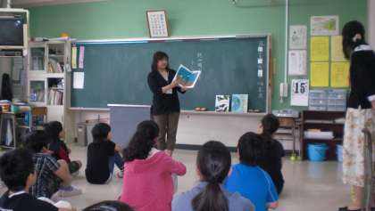 毎月低学年と高学年とに分けての朝の読み聞かせ、図書室整備、新刊図書の紹介、11月にはプロ顔負けの『大型絵本の読み聞かせ会』等々、愛とやる気とパワーに満ちています。お陰さまで、本校の子どもたちは、みな本が大好きです。