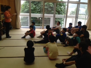 男女それぞれの部屋に入り、荷物をロッカーに片付けました。窓の外には河口湖が見えます。