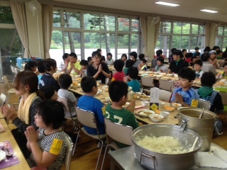 河口湖林間学園での初めての夕食は、カレーライスでした。