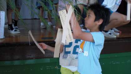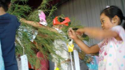 『大きくなったら、サッカーの選手に生れますように…』『美味しいケーキ屋さんになれますように』『200歳まで生きられますように』『○○のゲームが完全攻略できますように』それぞれの夢や願いがしっかりと笹に付けられました。
