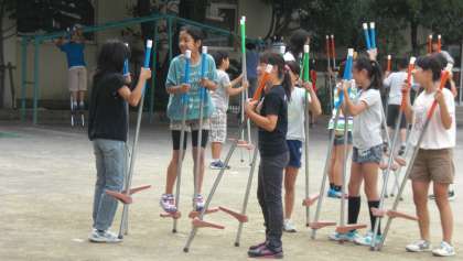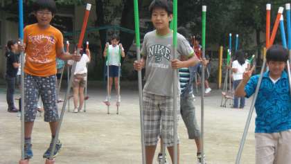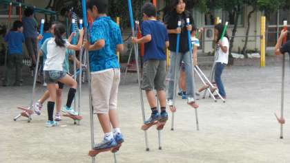 ベルマークの会の皆様が昨年度末に、購入して下さった竹馬。すぐにブームとなり、今では、1メートル以上もの高さの竹馬にすいすい気持ちよさそうに乗って歩いている子供がたくさんいます。