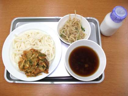 太陽は出ていませんが、湿度が高く、蒸し暑い1日でした。こんな日にぴったりの「冷やしつけ麺」です。つるつるっとしたうどんや、さくさくっとしたかき揚げは、食欲がわきます。午前授業で下校した児童は「たくさんおかわりしたよ〜」とぽっこりしたお腹を見せてくれました。
