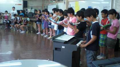 合唱は、一人一人が大きな口を開けて、クライマックスでは、高い音をきれいに出して上手でした。合奏は、3グループが交代で楽器分担しながら行いました。一人一人がとても一生懸命で、参観してすがすがしい気持ちになりました。