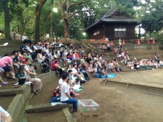 本日午後6時から世田谷八幡宮の土俵場で世田小地域ネットいぶき主催の納涼映画会が開催されました。