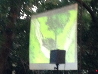 次第に暮れ行く鎮守の森、涼やかな風が頬に気持ちよく当たり、素敵な映画会でした。