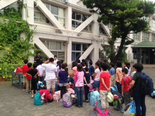 いつもの登校時間より1時間以上も早い6時50分に集合しました。初めての宿泊学習ですので、以前から楽しみに待っていました。