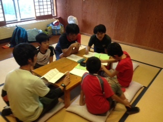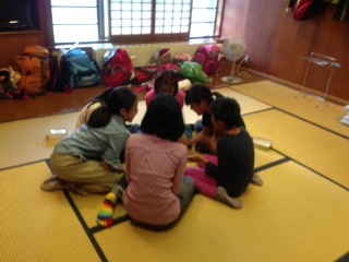 予定表を見ながら、確認している部屋、ゲームやトランプなどをしている部屋、体を休めている部屋等々。