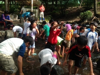 マスの動きや逃げる場所を探りながら、真剣に…狙って狙って。