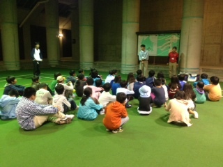 夕食後7時から専門のガイドさんから、川場村に生息する動物の生態について教えていただきました。その後、灯りの全く無い道を歩きながら、動物を見つけたり、五感の使い方を教えていただいたりしました。