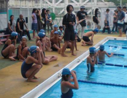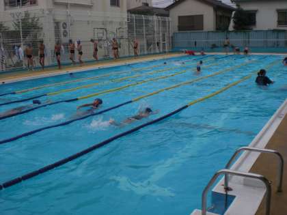 9月4日(金)に、5.6年生、仲よし4組の児童による「水泳記録会」が行われました。6月に始まった今シーズンの水泳の締めくくりにふさわしい水泳記録会となりました。自分の目標や記録に向けて一人一人が、本当に頑張ってくれました。恒例の学年対抗リレーでは、さすがに6年生が個々の力を発揮して、よい記録を出しました。
