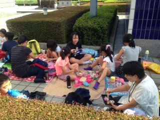 見学が終了した後、季節柄ハロウィンの仮装を楽しむ子供もいました。その後、日陰を探して昼食を食べました。どの子のお弁当も彩りよく美味しそうでした。