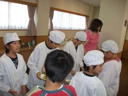全員だとすこし窮屈なので、9月30日は1組と4組、10月3日は2組と3組…と分かれて使いました。担任の先生の声かけにみんなで協力をして、配膳もスムーズです。いつもきれいに食べてくれるなかよしさんです。