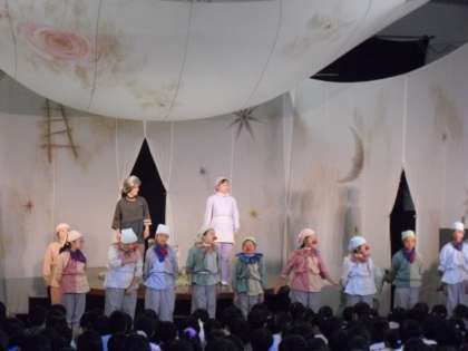 17日(木)に、劇団「たんぽぽ」の皆さんによる「100万回生きたねこ」を鑑賞しました。今年度は、文化庁の平成25年度次世代を担う子どもの文化芸術体験事業として9月にワークショップを行い、5,6年生の代表児童も参加し楽しい観劇となりました。