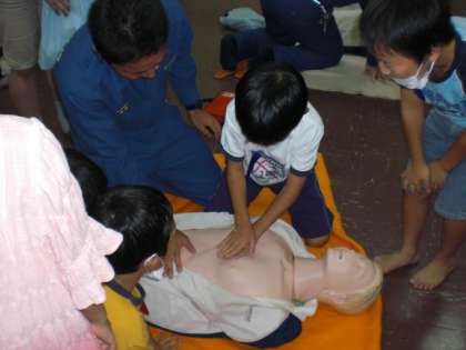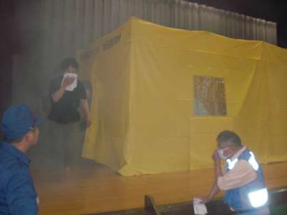 町会から50名、世田谷小学校から90名の方々が参加し、緊急時の対応の仕方を学びました。