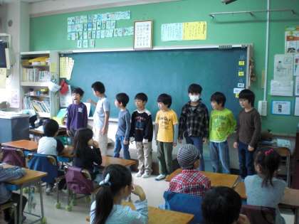 国語「きつねのおきゃくさま」のまとめとして、1年生に読み聞かせをしました。読みたい場面を選んで、グループごとに読み方を工夫しました。それぞれチームワークを発揮し、身振り、手振りを真剣に考えていました。最初、緊張した顔をしていましたが、終わったときは、満足した顔の2年生でした。