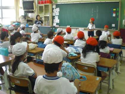 また、低学年では、念入りに健康観察を行い運動会の練習に向けて着替えも済ませ、朝の会を行いました。みんな気持ちを集中させて朝の会に取り組んでいました。
