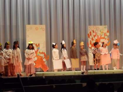 今日は学芸会の児童鑑賞日でした。どの子も少し緊張しながらも、真剣に役を演じていました。