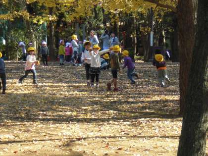 落ち葉や木の実を、「これなんだろう?」「うわー、帽子かぶってるのがいっぱい」などなど、とても楽しく秋を感じてきました。帰り道も、しっかり歩いて学校まで帰り、たくましさ・たのもしさも感じられた1日になりました。