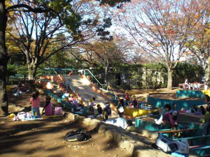 雲ひとつない秋晴れの空のもと、元気に歩いて、羽根木公園に行きました。