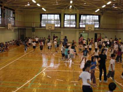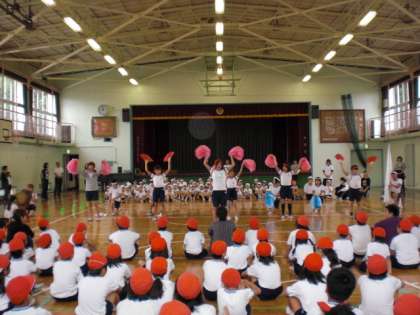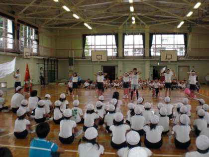 10月2日(金)の朝、運動会に向けて最後の全校練習をしました。全校での練習も佳境を迎えていますが、あいにくの雨のため、体育館で応援合戦・大玉送り・全校ダンスの練習がありました。お天気が心配ですが、各学年ともにしあげの練習に入っています。なお、当日の開催につきましては、このホームページ、緊急連絡メール、校門前の掲示、電話連絡網でお知らせいたします。