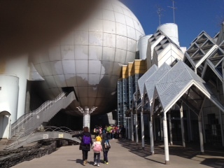 駅から歩いて5分くらい。湘南台文化センターに到着です。入口の不思議な形のモニュメントや、大きな丸いドームにワクワクです。
