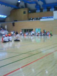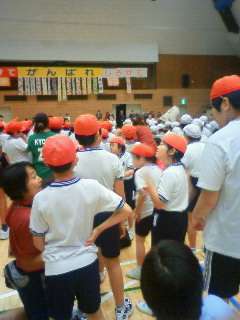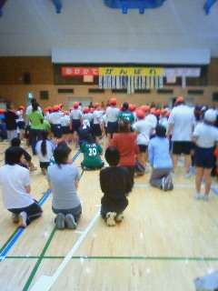 連合運動会開会式。そして、準備体操をしてから競技が始まります。はじめは、かけっこです。