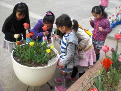 教科書も配布され、いよいよ今日からどの学年も本格的な授業が始まりました。 3年生は、初めての理科の時間、虫眼鏡を各自がもち、虫や植物の観察を楽しんでいました。6年生の算数では、線対称の図形の導入を都道府県名を使って楽しく学んでいました。5年生は、5円玉の図柄からわが国の産業を当て、社会の導入にしていました。1年生は防災頭巾のかけ方や机の並べ方、並び方、そして学校巡り、校庭の固定施設の使い方等々、丁寧に学んでいました。仲よし学級2年生以上では、どのクラスも仲よし学級全員の子供の顔写真を見ながらそれぞれの名前を記入していました。2年生と4年生は学級の係決めをしていました。 温かく、少し動くと汗ばむような日でした。気がつくと上着を脱いで、半そで姿に返信している子供たちが多かったです。