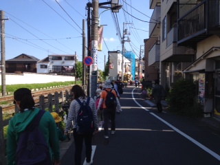 晴天のもと、1.2年生の遠足が始まりました!歩いて駅に行き、みんなで電車に乗ります。
