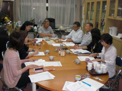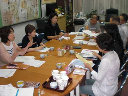 世田谷小の大応援団である「地域ネットいぶき」では、毎月1回午後7時から校長室で役員会を開催しています。今回は、