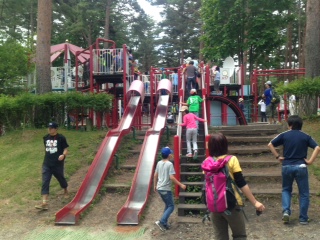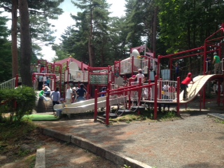 予定通り緑とアスレチックが誇る恩賜林庭園に寄りました。見渡す限り緑の芝と手入れの行き届いた木々、そして超ロング滑り台のあるアスレチック。着くやいなや子供たちの歓声。お昼まで思い切り遊びました。