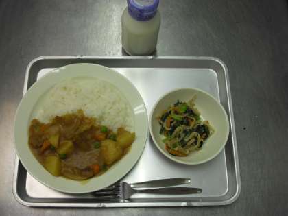 今日は児童に人気のカレーライスです。カレーライスは毎回残菜がほとんどなく、とてもうれしいです。きょうも良く食べてくれました。